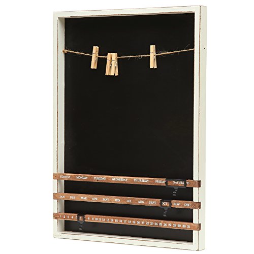 Wall Mounted Wood Frame Magnetic Chalkboard w/ Vintage Wood Sliding Calendar & Clip Photo Holder w/ Twine