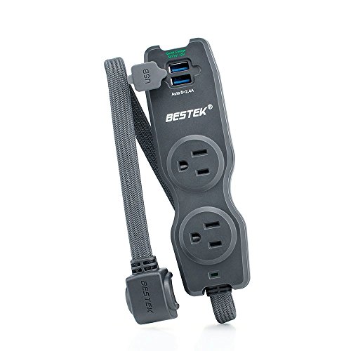 Portable Travel Power Strip, BESTEK 2-Outlet Surge Protector with 4.2A Dual Smart USB Charging Ports, 16-inch Cord, ETL Listed