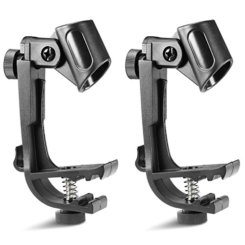 Neewer 2-Pack Clip-on Drum Mount Microphone Clamps Holders with Adjustable Height and Swivel, Easy to Use-Black
