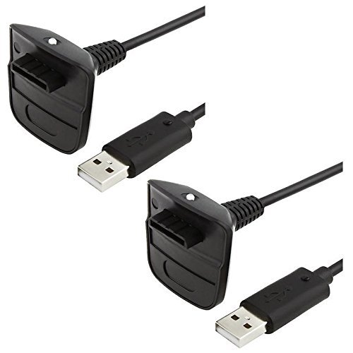 2 X USB Charger Charging Cable Replacement for Xbox 360 Wireless Controller - Black