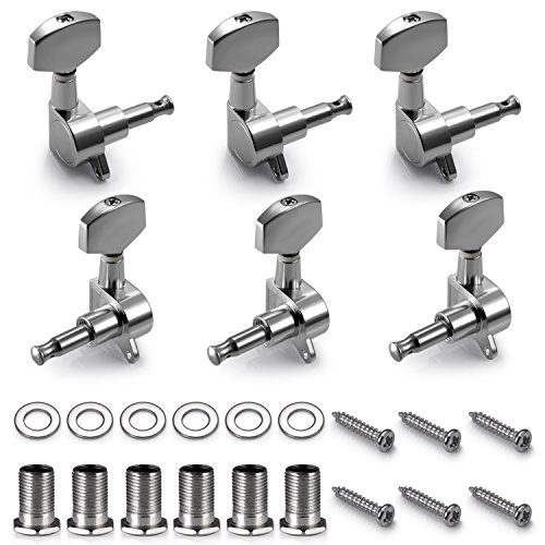 Neewer 6 Pieces Sliver Acoustic Guitar Machine Heads Knobs Guitar String Tuning Peg Tuner(3 for Left + 3 for Right)