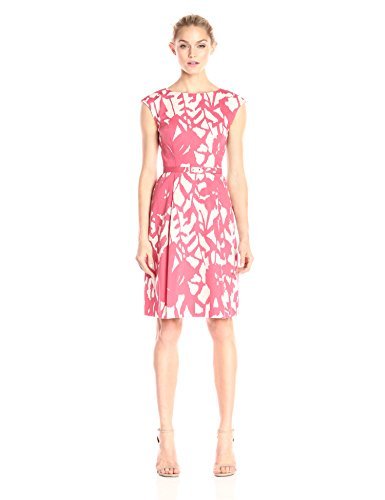 Adrianna Papell Women's Printed Fit and Flare Dress, Sand/Rose, 8