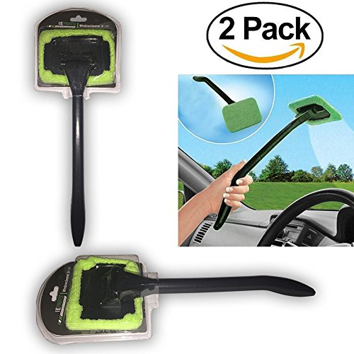 iElegance 2 Pack Auto Glass Cleaner! Windshield Clean Car Glass Cleaner Wiper Handle Wand Microfiber Cloth! Best Outside and Interior Car Window Cleaner! 100%!