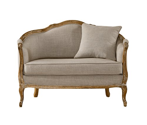 Baxton Studio Corneille French Country Weathered Oak Linen Upholstered 1-Seater Lounge Chair, Medium, Beige