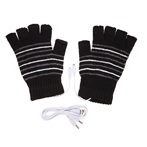 Chinatera 5V Laptop USB Powered Heated Stripe Half & Full Finger Winter Warm Hand Warmer Gloves Washable (Black)