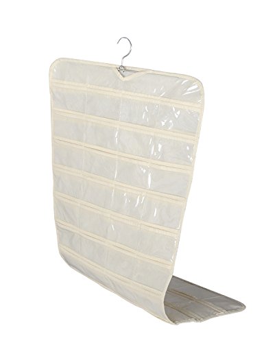 Ohlily Wall Hanging Jewelry Organizer Holder 80 Pockets Double Sided Storage (Beige, 18" W35 H)