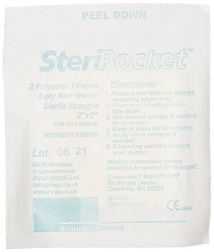 Richmond 303120 Steripocket Non-Woven Sponges, Sterile, 2 Rayon/Poly, 2" x 2" Size (Pack of 200)