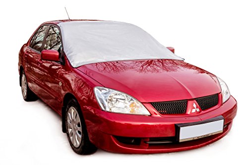 HOLAUTO - All Weather Windshield Cover - Reversible Frost Guard Windshield Snow Cover & Windshield Sunshade - Safe on Glass & Car Paint - Windproof Magnetic Edges Attach in Seconds – Easy To Use!