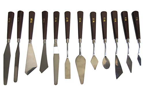 12-piece Steel Painting Knife Set, Artist Knives with Wooden Handle, Art Palette Knife Set with Different Blade Shapes
