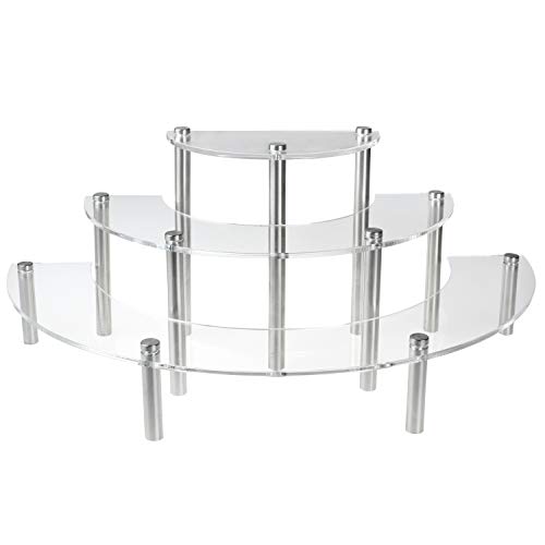 MyGift Clear Acrylic 3 Tier Half Moon Shelf Unit, Table Top Retail Display Riser, Spice Jar Rack
