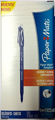 Paper Mate Eraser Mate Stick Ballpoint Pens, Medium Point, Blue Ink, 12 Pack