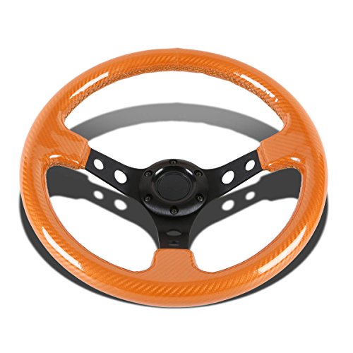 350mm Aluminum 3 inches 3-Spoke Deep Dish Carbon Fiber Look 6-Hole Racing Steering Wheel (Orange)