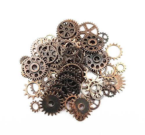 CrazyPiercing 100 Gram Assorted Antique Steampunk Gears Charms Pandent Clock Watch Wheel Gear for Crafting, Jewelry Making Accessory (Copper)