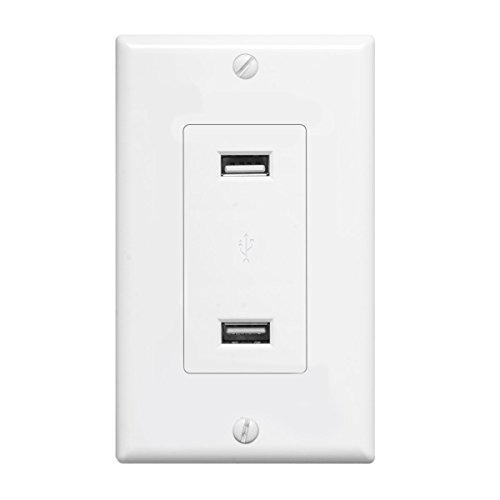 TOPELE LD-U001 4.2A Smart High Speed USB Charger Outlet, USB Wall Outlet, 2 USB Ports with 2 Wall Plates, Electrical USB Outlet, White, UL Listed