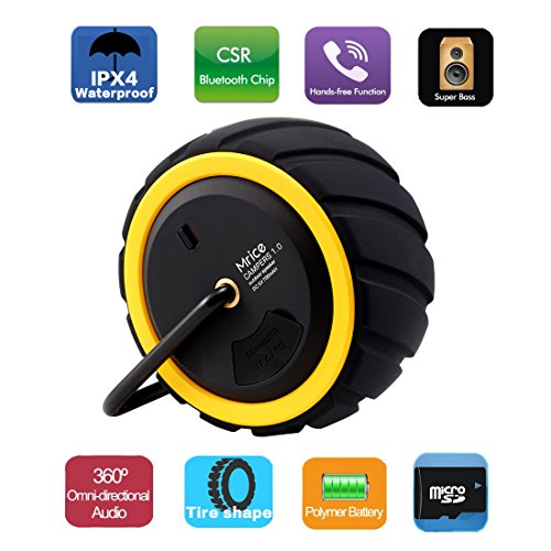 Outdoor Waterproof Bluetooth Speaker,Aukoo Mrice Rugged Splashproof Bathroom Portable Wireless Bluetooth Speaker with Dust-proof,Shock-proof, Micro SD Player for Outdoors (Yellow)