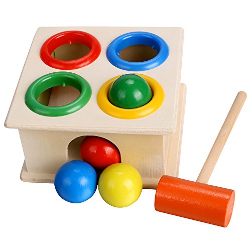 Arshiner Multi-color Small Hit Ball Box Toys,Wooden Pound Toy For Kids,Wooden Hammering Toy (US STOCK)