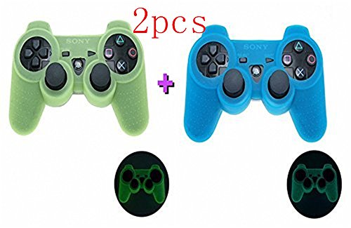 CHENSHI Pack of 2(Blue and Green)GLOW in DARK Silicone Case Skin Protector Cover for Playstation 3 Dualshock Wireless Game Controllers