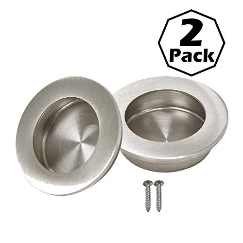 Gobrico 304# Stainless Steel Flush Recessed Door Handle Pull Drawer Inside Circular 50mm 2in Satin Nickel Finished2Pack