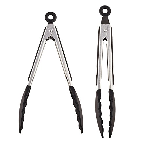 ELEC Premium Silicone Kitchen Tongs 2 Pack (9-Inch & 12-Inch) Salad Tongs Easy Grip Silicone Cooking Tongs/ Food Tongs Bonus Silicone Oven Mitt