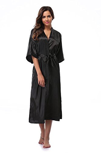 Vogue Bridal Women's Long Satin Kimono Robes Pure Color Silk Kimono Bathrobes with Oblique V-Neck for Wedding