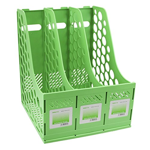 Starsource Office School Home Desk Plastic Magazine Literature File Holder Rack Case Box Crate Organizer,3 Slots,Green/Pink