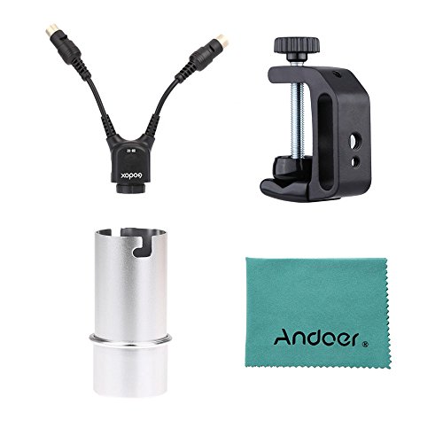 Godox DB-02 Cable Y Adapter 2 to 1 + Q-type Multifunctional Clip + AD-S15 Flash Lamp Tube Bulb Protector Cover for Power Pack PB960 Flash AD360 AD180 Flash Speedlite w/ Andoer® cleaning cloth