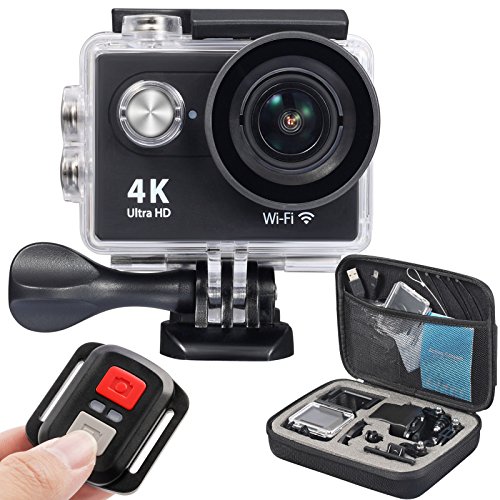 OnLyee 4K WiFi Sports Action Camera Ultra HD Waterproof DV Camcorder 12MP 170 Degree Wide Angle 2 inch LCD Screen/2.4G Remote Control/Rechargeable Batteries (Black)