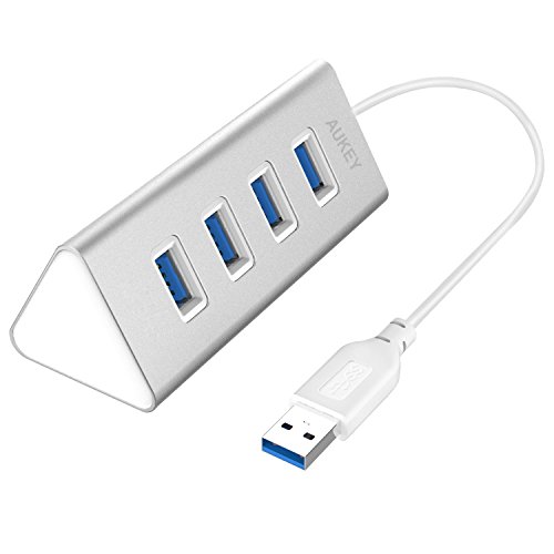 AUKEY CB-H31 4-Port USB 3.0 Hub for iMac, MacBook Pro/Air, Surface Book, and More, Silver Pack