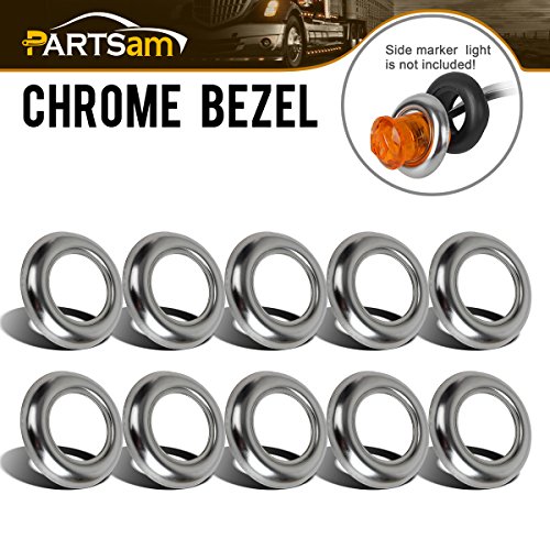 Partsam Truck Trailer Led Marker Lights 3/4" Round Bezels Cover Mount Clearance Bullet Marker lights, Mini Round Stainless Steel Trim Ring Bezel For all 3/4" Clearance Lights