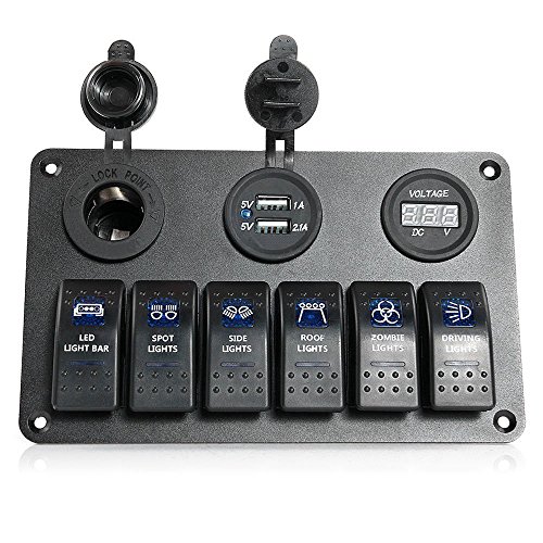 6 GANG WATERPROOF CAR MARINE BOAT CIRCUIT BLUE LED ROCKER SWITCH PANEL BREAKER