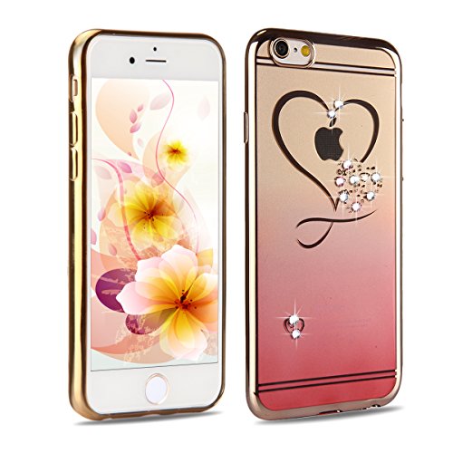 iPhone 6 Case, iPhone 6S Case,UZZO iPhone 6 6S 4.7 inch Gold Plating Bumper TPU Case Cover with Love Heart Design Inside Glitter Diamond Crystal Clear TPU Case Cover for iPhone 6/6S (Red)