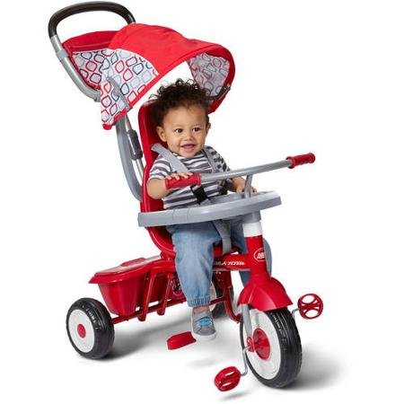 Radio Flyer Ez Quick Fold Stroll 'N Sturdy Steel Frame 4 Ways to Ride Children's Red Trike with Height-adjustable Push-handle and Canopy