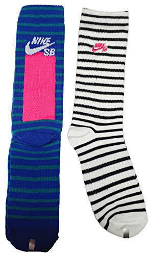 Nike SB 2-Pack Striped Out Crew Socks Girls Youth 5Y-7Y//9-11