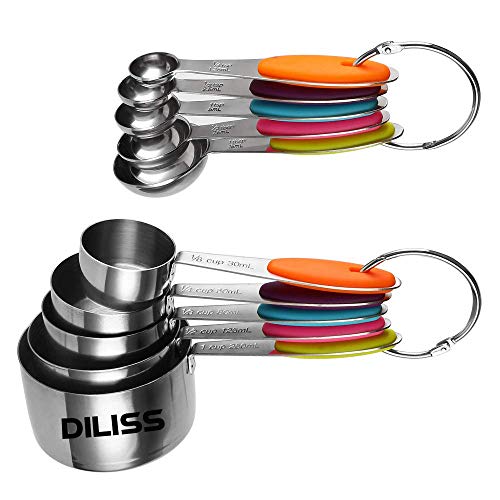 Royal Classique 10 Piece Stainless Steel Measuring Cups and Spoons Set with Silicone Handles