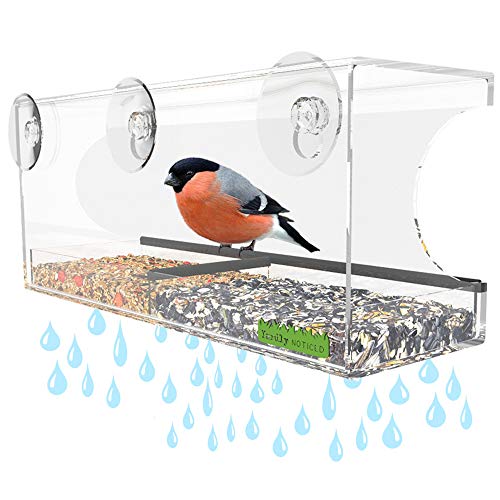 Yardly Noticed Window Bird Feeder with Removable Tray, Drain Holes, Extended Perch, 4 Suction Cups - Crystal Clear See Through Design 2017 - See Wild Birds Up Close, Great for Kids & Cats