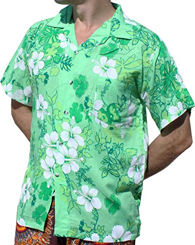 RaanPahMuang Light Viscose Hawaiian Shirt Hibiscus Flower Mix Mint Green Size L