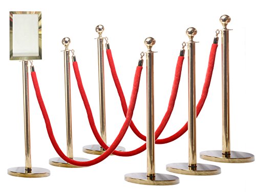 Rope Stanchion, 6 Gold Posts + 4 Ropes + Rope Signframe,