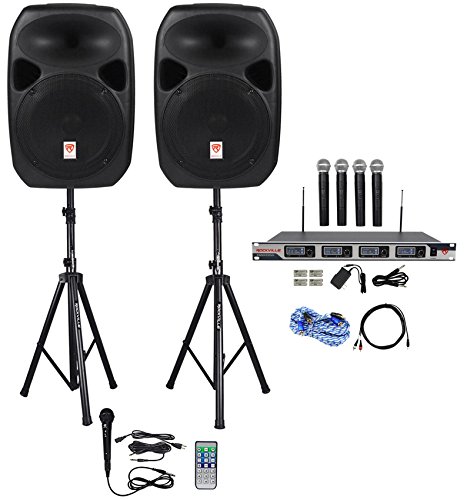 Rockville Power GIG RPG-122K All In One DJ/PA Package (2) 12" DJ/PA Speakers 1000 Watts Peak Power/250 Watts RMS with Built in Bluetooth, USB/SD Player, FM Tuner, Speaker Stands + a Wired Microphone