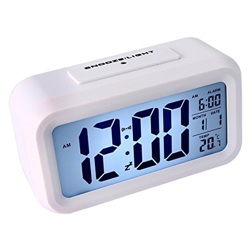 Sminiker Battery Powered Large Screen Digital Alarm Clock with Backlight and Snooze Function, White