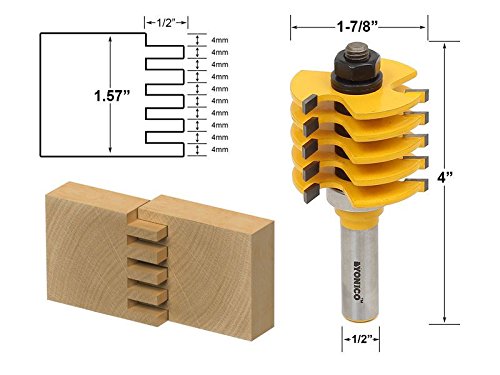 Box Joint Router Bit - Adjustable 5 Blade - 3 Flute - 1/2" Shank - Yonico 15130
