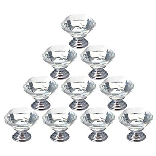 Drawer Pull Handles, YIFAN 10Pcs 30mm Crystal Glass Diamond Shape Cabinet Cupboard Drawer Pull Knobs Set with Silver Screws - Transparent