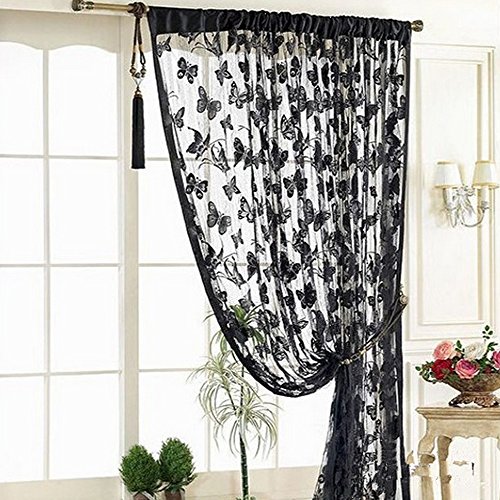 YING LAN String Butterfly Door Window Curtain Drapes Divider Room Blind Shades Tassel Treatment Black