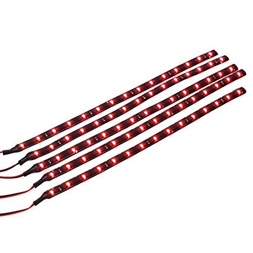 Lemonbest 30cm 3528 SMD Flexible Waterproof LED Strip light for Car Interior & Exterior Decoration DRL Daytime Running Light Headlight Slim Light, Pack of 5 (Red)