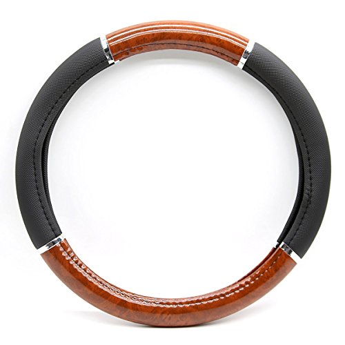 Gevog 15" Universal Fit Soft Leather Wood Grain/Black Sport Steering Wheel Cover