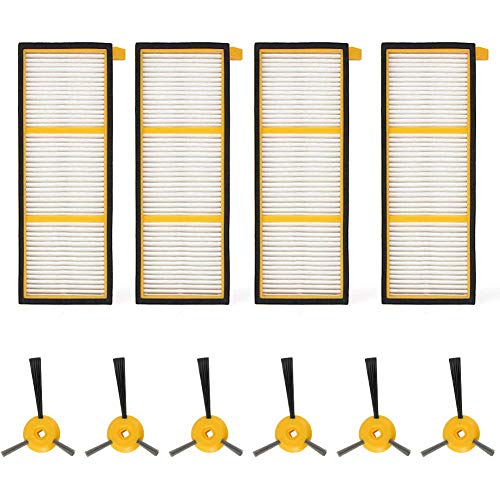 Wadoy RV750 Brush Filter Compatible with Shark Ion Robot RV720 RV700 RV750C RV755 Vacuum Cleaner (6 Brushes and 4 Filters)