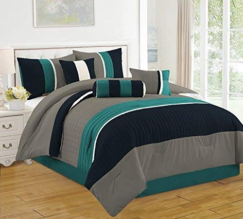 Modern 7 Piece Bedding Lemon Yellow / Grey / White / White Pin Tuck / Stripe King Comforter Set with accent pillows
