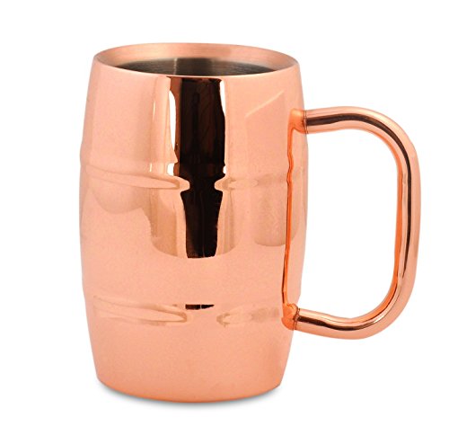 Stainless Steel Double Wall Insulated Beer (Or Coffee / Tea) Mug / 16 Oz Shiny Metal Antique Look with Copper Plated Classic Barrel Design / Keeps Beer or Any Cold Drink Colder Longer Without Sweating