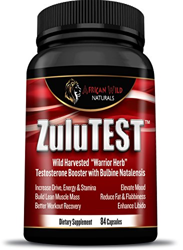 ZuluTEST, Natural Testosterone Booster for Men and Women with Bulbine Natalensis, Best Extra-Strength Organic Herbal Supplement To Increase Energy, Libido, Stamina and Fat Loss, 84 Veggie Capsules