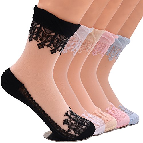 Sept.Filles Socks Women's Sock Ultra-thin Transparent Lace Socks Packs of 5