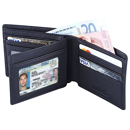Hoobest RFID Blocking Genuine Leather Wallet for Men -Travel Credit Card Wallets (Black)